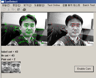 I was responsible to Face detection algorithm module at IT R&D Center. Even though I also envolved Recognition system, somewhat, My major researching area was Face and Eye Detecting. Especially result of eye detection is very important to the result of recognition process |