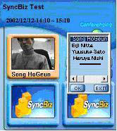 Syncbiz is a real-time collaboration system, which includes Application sharing module, Text chatting module, Video/Audio conferencing module, Shared virtual directory module, Multiuser White board module and Realtime Agenda Mgr(Scheduler) module. One session permits 10 concurrent users and all users share each modules. And One syncbiz local server has a capacity to sustain 50 concurrent sessions under main server which controls 50-capacity local server. However, users within same session sharing one applications and each of them can manipulate and edit their document or application. With this useful collaboration system, people who are far away can co-work in real-time by watching and talking with others and manipulate something.